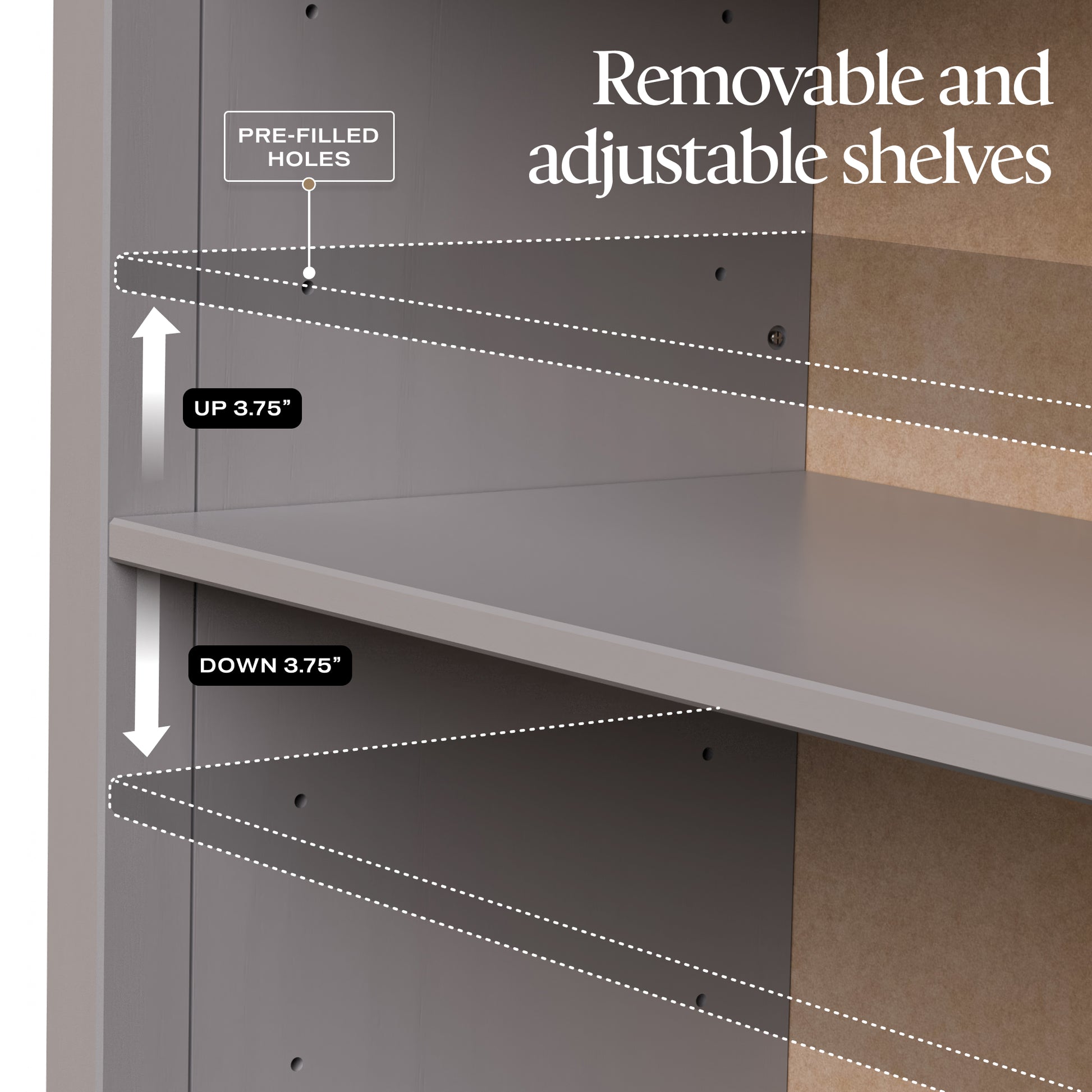 - Includes four adjustable shelves to organize books, décor, and household items with ease.